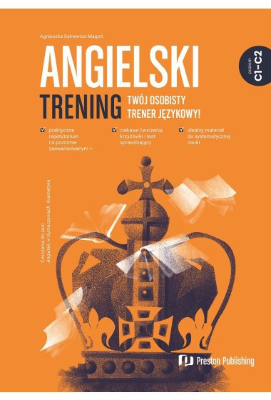 „Angielski. Trening C1-C2” to idealny wybór dla osoby samodzielnie uczącej się języka angielskiego, która jest już na zaawansowanym poziomie, ale czuje potrzebę pogłębiania swojej wiedzy na temat trudniejszych zagadnień gramatycznych. Książka ta może również być pomocna w przygotowaniach do egzaminów i matury na poziomie rozszerzonym. Dzięki krótkim i praktycznym wyjaśnieniom gramatycznym przypomnisz sobie teorię dotyczącą danego zagadnienia, dzięki czemu wykonanie zadań będzie łatwiejsze. Klucz do zadań umożliwi Ci natomiast sprawdzenie poprawności Twoich odpowiedzi, a krzyżówki utrwalą wybrane słowa i zwroty.