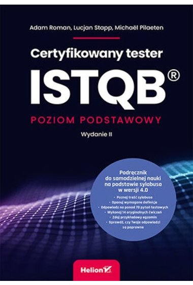 Podręcznik do samodzielnej nauki na podstawie sylabusa w wersji 4.0 Poznaj treść sylabusa Opanuj wymagane definicje Odpowiedz na ponad 70 pytań testowych Wykonaj 14 oryginalnych ćwiczeń Zdaj przykładowy egzamin Sprawdź, czy Twoje odpowiedzi są poprawne Testerem być! Testowanie oprogramowania to jedna z najdynamiczniej rozwijających się dziedzin inżynierii oprogramowania. Zarobki doświadczonych testerów są porównywalne z wynagrodzeniem, jakie otrzymują dobrzy programiści. Aby rozpocząć karierę w tym zawodzie, trzeba się legitymować odpowiednimi umiejętnościami. I dlatego warto uzyskać certyfikat ISTQB(R): Certyfikowany tester - poziom podstawowy. Jest to uznawany na całym świecie dokument świadczący o opanowaniu najważniejszych kompetencji z zakresu kontroli jakości oprogramowania. Powszechnie dostępne w sieci materiały dotyczące sylabusa, a także egzaminu umożliwiającego zdobycie certyfikatu ISTQB(R) są niestety często niepełne lub nieaktualne, zwłaszcza w odniesieniu do najnowszego sylabusa w wersji 4.0 z 2023 roku, w znaczący sposób różniącej się od poprzedniej, pochodzącej sprzed pięciu lat. Aby uniknąć niepotrzebnej straty czasu i frustracji związanej z wielokrotnym podchodzeniem do egzaminu, warto sięgnąć po rzetelne źródło wiedzy. Ta publikacja - napisana przez współautorów sylabusa w wersji 4.0 - pozwala szybko opanować zagadnienia wymagane na egzaminie, tak aby bez stresu poradzić sobie z uzyskaniem certyfikatu. Sięgnij po najlepsze źródło wiedzy!