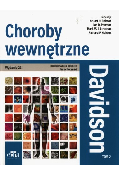 Książka Principles and Practice of Medicine sir Stanleya Davidsona po raz pierwszy ukazała się w 1952 roku. Przez kolejne dziesięciolecia ten napisany przez profesora medycyny Uniwersytetu w Edynburgu podręcznik doczekał się 23 wydań i stał się ikoną wśród podręczników interny na całym świecie. Dzięki przejrzystemu układowi oraz kompleksowemu podejściu do problemu klinicznego uzyskał uznanie studentów medycyny oraz lekarzy specjalizujących się w chorobach wewnętrznych. Każde zagadnienie kliniczne wywodzi się tu od przedstawienia niezbędnych informacji anatomicznych, biochemicznych i patofizjologicznych, pozwalających na zrozumienie istoty choroby, co pociąga za sobą racjonalne postawienie diagnozy i zaplanowanie terapii. Interna jest królową medycyny, dlatego podręcznik Davidsona, intuicyjnie czy w sposób zamierzony, w wielu aspektach ma charakter interdyscyplinarny, wykraczający w przedstawianiu problemu poza ramy czysto internistyczne. Dlatego jest chętnie studiowany przez lekarzy innych specjalności, szukających rozwiązania problemu klinicznego swojego pacjenta w oparciu o holistyczne podejście do człowieka. Jest to niezwykle istotne w czasach, gdy obserwujemy tendencje do wąskich specjalizacji w medycynie. Mamy więc kolegów lekarzy, w których kręgu zainteresowania pozostaje jeden narząd, czasami jedna choroba. W gruncie rzeczy prowadzi to do odhumanizowania medycyny. Dlatego Principles and Practice of Medicine Davidsona powinny być lekturą każdego lekarza praktyka. Drogi Czytelniku, Szanowny Kolego. Masz przed sobą tłumaczenie już 23 wydania podręcznika. Jest to zarazem drugie wydanie polskie. Poprzednie z 2006 roku zyskało w naszym kraju spore grono czytelników. Wydania oryginalne są podstawą nauczania studentów anglojęzycznych na wielu polskich uniwersytetach medycznych. Obecne polskie wydanie ma zachowany układ tematyczny. Grono autorów powiększyło się o kolejnych specjalistów z całego świata, zyskując na świeżości i aktualności. Przejrzysta szata graficzna, liczne ilustracje oraz dopracowane tabele pozwalają na lepsze oraz trwałe przyswajanie wiedzy. Moim życzeniem jako redaktora naukowego tego podręcznika jest, aby tytuł Principles and Practice of Medicine na stałe zagościł w świadomości polskich studentów medycyny i lekarzy. Mam nadzieję, że będzie to dodatkowa pomoc w przygotowywaniu się do licznych egzaminów, które stoją przed wszystkimi adeptami medycyny. Ale przede wszystkim liczę na to, że znajdzie się na biurku każdego lekarza praktyka jako niezbędne wsparcie w jego codziennym lekarskim wnioskowaniu. Miłej lektury.