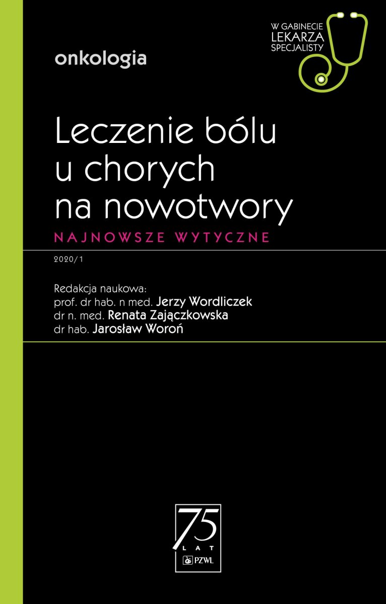 Kolejny numer z serii „W gabinecie lekarza specjalisty. Onkologia”, pod redakcją naukową prof. dr. hab. n. med. Jerzego Wordliczka, dr n. med. Renaty Zajączkowskiej i dr. hab. Jarosława Woronia, został poświęcony leczeniu bólu u chorych na nowotwory. Autorami są wybitni specjaliści z zakresu medycyny bólu, anestezjologii, medycyny paliatywnej, onkologii oraz farmakologii klinicznej. Dlatego też poszczególne rozdziały mają charakter opracowań monograficznych, zagadnień związanych zarówno z patomechanizmami poszczególnych rodzajów bólu, kliniczną oceną bólu u chorego na nowotwór, jak i leczeniem zespołów bólowych. Publikacja skierowana jest do lekarzy onkologów, którzy na co dzień zajmują się leczeniem chorych cierpiących z powodu bólu towarzyszącego chorobie nowotworowej, jak też do lekarzy innych specjalności, którzy w codziennej praktyce spotykają się z pacjentami onkologicznymi.