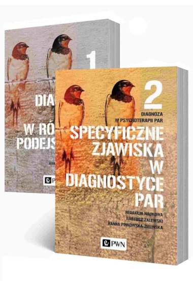 Diagnoza w psychoterapii par. Tom 1: Diagnoza par w różnych podejściach to polifonia psychoterapeutów par pracujących w różnorodnych nurtach teoretycznych. W kolejnych rozdziałach omówiona została specyfika pracy diagnostycznej psychoterapeuty z perspektywy różnych teorii psychoterapii par: systemowej, psychoanalitycznej, narracyjnej terapii więzi, skoncentrowanej na emocjach i poznawczo-behawioralnej. Treść tych rozdziałów pozwala dostrzec różnice w sposobie rozumienia i interpretacji problemów, z którymi zgłaszają się osoby doświadczające trudności w swoich związkach, a także określić miejsce pracy diagnostycznej w procesie terapeutycznym. Drugi tom Diagnozy w psychoterapii par poświęcony jest specyficznym zjawiskom zachodzącym w procesie diagnozowania bliskich związków. Autorzy, wywodzący się ze środowiska polskich psychoterapeutów, przybliżyli szczególne, nieczęsto opisywane w literaturze dylematy diagnostyczne, zjawiska i procesy, które pojawiają się na tym etapie pomocy terapeutycznej. Czytelnicy znajdą tu narzędzia pomocne m.in. w lepszym rozumieniu dynamiki relacji czy analizie stanów emocjonalnych obecnych w związku. Przybliżono ponadto specyfikę pracy z parami jednopłciowymi, międzykulturowymi czy odesłanymi przez instytucje, czyli niewolontaryjnymi. Diagnostyczny etap pracy terapeutycznej został tu przedstawiony nie tylko z perspektywy doświadczonych psychoterapeutów-superwizorów. Opisano także trudności, z jakimi borykają się osoby, które dopiero rozpoczynają pracę z parami. Autorzy wskazali ponadto pytania i problemy, których rozstrzygnięcie wymaga dalszej pracy badawczej i koncepcyjnej, a także merytorycznej dyskusji w środowisku psychoterapeutów.