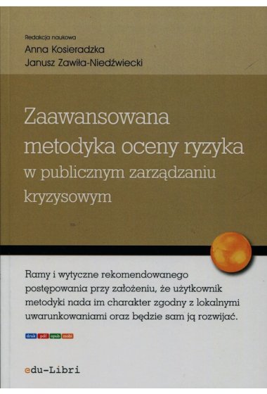 W monografii przedstawiono zaawansowaną metodykę oceny ryzyka na potrzeby systemu zarządzania kryzysowego w Polsce. Jest realizacją obowiązku posiadania krajowej metodyki w tym zakresie, spoczywającego na Polsce jako członku Unii Europejskiej. W pełni respektuje regulacje prawne obowiązujące w Polsce, w szczególności Ustawę o zarządzaniu kryzysowym oraz Unijny Mechanizm Ochrony Ludności. Książka jest przeznaczona dla: • jednostek administracji publicznej wszystkich szczebli i ich komórek odpowiedzialnych za zarządzanie kryzysowe; • podmiotów, które są operatorami systemów infrastruktury krytycznej w rozumieniu ustawy o zarządzaniu kryzysowym; • studentów kierunków: Bezpieczeństwo publiczne, Bezpieczeństwo narodowe, Administracja. Zaawansowana metodyka ma charakter otwarty, co oznacza, że zakreśla ramy i podaje wytyczne rekomendowanego postępowania, ale też i zakłada, że określony jej użytkownik, stosując się do nich, nada im charakter zgodny z lokalnymi uwarunkowaniami oraz będzie wzmacniać jej oddziaływanie przez wdrożenie procesów: • systematycznego rozwijania metodyki, • zarządzania pozyskiwaną wiedzą o zagrożeniach i ryzyku, • zarządzania wiedzą o społecznym, technicznym i organizacyjnym kontekście funkcjonowania systemów infrastruktury krytycznej państwa oraz usługach logistyki społecznej związanych z tą infrastrukturą.