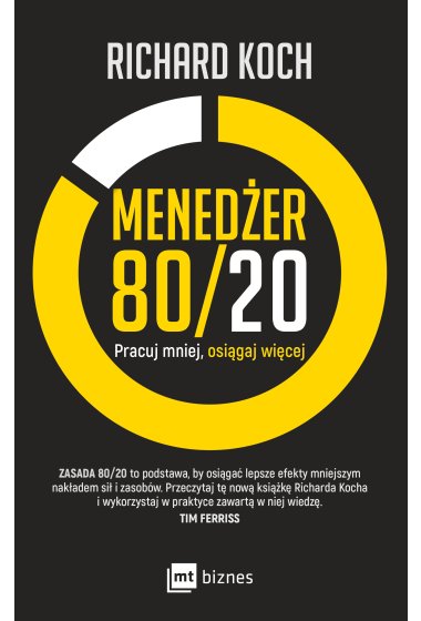 Piętnaście lat temu bestsellerowy autor Richard Koch przybliżył światu zasadę 80/20, zgodnie z którą 20 procent naszego czasu, wysiłku i ważnych decyzji jest źródłem 80 procent naszego sukcesu. W książce Menedżer 80/20 Koch pokazuje, jak wykorzystać tę zasadę, by stać się skuteczniejszym menedżerem i osiągnąć wyjątkowe rezultaty w życiu zawodowym przy ułamku dotychczasowego wysiłku.