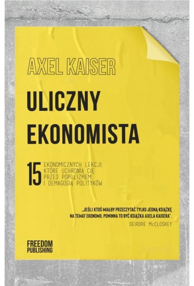 Bardziej niż teoretycznych debat pomiędzy ekspertami potrzeba nam dziś dobrych ekonomistów ulicznych zdolnych domagać się od liderów opinii i polityków minimum rozsądku. fragment książki Jeśli ktoś miałby przeczytać tylko jedną książkę na temat ekonomii, powinna to być książka Axela Kaisera. Świetnie napisana i znakomicie uargumentowana, zmieni ona twoje myślenie, twoje poglądy polityczne, a być może nawet twoje życie. Zamiast do sali wykładowej, Kaiser zabiera Czytelnika na ulicę czyli tam, gdzie rzeczywiście odbywa się aktywność gospodarcza. Słynny amerykański pisarz Mark Twain powiedział kiedyś: Większości kłopotów nie przysparzają nam braki wiedzy, lecz pozory wiedzy, która okazuje się błędna. Lektura książki Kaisera oszczędzi ci wielu kłopotów wynikających zarówno z braku wiedzy, jak i z błędnych przekonań. Deirdre McCloskey profesor zwyczajny ekonomii, historii, filologii angielskiej i komunikacji na Uniwersytecie Illinois w Chicago