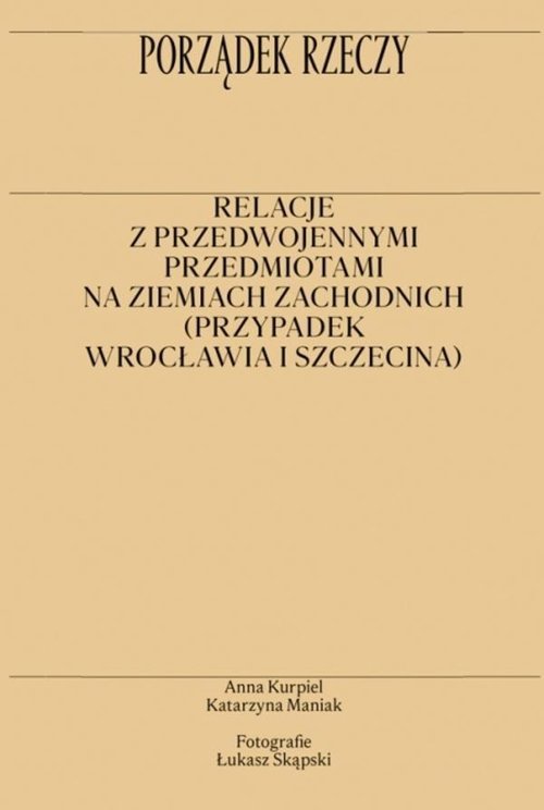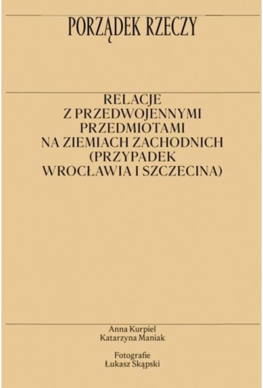 Porządek rzeczy. Relacje z przedwojennymi przedmiotami na ziemiach zachodnich (przypadek Wrocławia i Szczecina) to książka o postawach i praktykach wywołanych przez przedwojenne rzeczy we współczesnym Wrocławiu i Szczecinie. Termin „poniemieckie”, potoczne określenie przedmiotów pozostawionych na ziemiach włączonych w granice Polski po II wojnie światowej, sugeruje, że „niemieckie" to minione i pozbawione ciągu dalszego. Badania etnograficzne prowadzone z wykorzystaniem narzędzi sztuki pokazują coś przeciwnego. Proces przysposabiania wciąż trwa, relacje pomiędzy ludźmi a rzeczami są kontynuowane, odkrywane i zawiązywane na nowo. Książka poświęcona jest więc sposobom używania przedwojennej spuścizny oraz rozłożonym w czasie aktom jej przejęcia i posiadania. Opisujemy rzeczy spokrewnione, uklasowione, rzeczy na sprzedaż, rzeczy użyteczne, a także te, które w integralny sposób należą do przestrzeni domu. Współtworzą one sieć powiązań wymykającą się kontynuowanemu od powojnia biało-czarnemu oglądowi rzeczywistości, według którego postawy wobec przeszłości określane są jednoznacznie jako jej afirmacja bądź wyparcie. Opowieść o relacjach z przedmiotami tworzą dwie oddzielne, choć powstające równolegle narracje: tekst i esej wizualny autorstwa Łukasza Skąpskiego. Wspólnie koncentrują się na pytaniu o znaczenia, jakie dla mieszkanek i mieszkańców polskich miast ma niemiecka przeszłość. Anna Kurpiel – dr, etnolożka i antropolożka kultury, adiunktka w Katedrze Nauk Społecznych i Ekonomicznych Centrum Studiów Niemieckich i Europejskich im. W. Brandta Uniwersytetu Wrocławskiego. Badania terenowe prowadzi w Polsce (na ziemiach zachodnich) i w Republice Macedonii Północnej. Autorka książki Cztery nazwiska, dwa imiona. Macedońscy uchodźcy wojenni na Dolnym Śląsku. Interesuje się dziedzictwem kulturowym, szczególnie na terenach (post)migracyjnych i tranzytowych oraz antropologią pamięci. Katarzyna Maniak – dr, antropolożka kultury, adiunktka w Instytucie Etnologii i Antropologii Kulturowej Uniwersytetu Jagiellońskiego. Jej zainteresowania badawcze obejmują dziedzictwo kulturowe i jego społeczne oddziaływanie oraz relacje pomiędzy antropologią i sztuką. Prowadzi badania skupione na pojęciu własności i antropologii pracy. Autorka kilkunastu publikacji naukowych poświęconych ww. tematyce oraz projektów wystawienniczych. Łukasz Skąpski – jeden z najciekawszych artystów polskich, w latach 2012-2018 kierownik Katedry Fotografii na Wydziale Malarstwa i Nowych Mediów Akademii Sztuki w Szczecinie, absolwent Wydziału Malarstwa ASP w Krakowie. Zajmuje się fotografią, instalacją, obiektami, wideo, etc. W latach 1988-1991 mieszkał w Chinach, obecnie w Szczecinie. Pobyt w Pekinie zaowocował zainteresowaniem artysty tematyką polityczną. Tam też artysta odkrył dla siebie metodę posługiwania się zbiorem w sztuce. Od 2001 roku jest członkiem założycielem Supergrupy Azorro, która na trwałe zapisała się w polskiej sztuce wideo. W ostatnich latach główny akcent w jego twórczości kładzie się na tematy społeczno-polityczne.