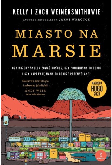 Zdobywczyni HUGO 2024 i wielu innych nagród Druga najchętniej wybierana na prezent książka w układzie słonecznym NIEZIEMSKA i zabawna opowieść o perspektywach kosmicznego osadnictwa – spod pióra autorów bestsellera JAKOŚ WKRÓTCE – ze świetnymi ilustracjami Zacha Weinersmitha. • Czy można rozmnażać się na Marsie? • Czy lepiej żyć tam niż na Ziemi po wojnie nuklearnej? • A co z wojną w kosmosie? • Czy czeka nas kryzys mieszkaniowy na księżycowych Szczytach Wiecznego Światła? • Kto nam przyjdzie z pomocą, jeśli utkniemy w Kraterach Wiecznej Ciemności? • Dlaczego astronauci uwielbiają sos taco? • A skoro już o jedzeniu mowa – jaki właściwie jest status prawny kosmicznego kanibalizmu? Jeśli chcesz poznać odpowiedzi na te i wiele więcej intrygujących pytań, koniecznie przeczytaj tę fascynującą książkę! Z Ziemią nie jest zbyt dobrze. Dlatego perspektywa rozpoczęcia wszystkiego od zera na jakiejś innej odległej planecie – gdzie nie ma katastrofy klimatycznej, wojen, X-a ani innych mediów społecznościowych – wydaje się coraz bardziej kusząca. Szczególnie, że ponoć nie jest to już aż tak niemożliwe. Czy aby na pewno? Kelly i Zach Weinersmithowie napisali niesamowitą książkę o – wydawać by się mogło – świetlanej przyszłości kolonizacji kosmosu. Szkopuł w tym, że po latach rzetelnego researchu i tysiącach godzin wywiadów z czołowymi astrofizykami, inżynierami i ekspertami z zakresu eksploracji kosmosu wcale już nie są tacy pewni, czy kosmiczne osadnictwo to rzeczywiście dobry pomysł. Kosmiczna technologia i biznes przeżywają gwałtowny rozwój, ale wciąż nie dysponujemy pełną wiedzą o tym, czy w kosmosie można począć dziecko, jak budować kosmiczne osady i czy da się stworzyć państwa w kosmosie tak, by nie wywołać wojny na Ziemi. Mimo to ludzkość wydaje się przeć ku kosmicznej ekspansji… Miasto na Marsie studzi te zapały, dowodząc, że marzenie o nowych światach może okazać się istnym koszmarem: zarówno dla osadników, jak i tych, którzy pozostaną na Ziemi. Z błyskotliwym poczuciem humoru i korzystając ze swojej dogłębnej znajomości tematu, autorzy próbują odpowiedzieć na jedno z najdonioślejszych pytań ludzkości: jak – i czy w ogóle warto – stać się gatunkiem multiplanetarnym? Wsiadajcie, lecimy na Marsa!