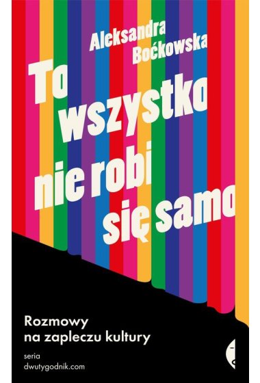 Oglądając spektakl albo film, czytając książkę czy oglądając wystawę, rzadko pamiętamy o tym, jak wiele osób pracowało przy ich powstaniu. Dzięki znakomitym rozmówcom Aleksandry Boćkowskiej zaglądamy na zaplecza kultury i poznajemy tajniki tych na co dzień niedostrzegalnych zawodów. Bo kto z nas zastanawiał się, na czym polega praca tłumacza migowego, realizatorki audiobooków, audiodeskryptora albo opiekunki archiwum fotograficznego? Czy wiemy, po co montażyście wystaw deskorolka? Jakie cechy musi mieć dobry researcher? Co to jest zmarszczenie marszczyciela i czym różni się rekwizyt od kostiumu? To wszystko nie robi się samo to zbiór rozmów z ludźmi, którzy współtworzą kulturę „z tylnego siedzenia” i pomagają nam zrozumieć, ile osób i jak wiele czynności potrzeba, by wystawy, książki, muzyka i festiwale w ogóle istniały. A przy okazji, dlaczego – jak mówi jedna z rozmówczyń Boćkowskiej – najciekawsze dzieje się właśnie na zapleczu. Aleksandra Boćkowska od 2019 roku na łamach „Dwutygodnika” prowadzi cykl rozmów Zaplecze kultury. To one były zaczynem tej książki. Na To wszystko nie robi się samo składają się premierowe teksty oraz uzupełnione rozmowy opublikowane w „Dwutygodniku”. Książka powstała przy współpracy z Domem Spotkań z Historią. „Mikroczynności dotyczą wszystkiego, co dzieje się w kulturze – od spotkań autorskich w domach kultury i wystaw w lokalnych muzeach przez wydawanie i promowanie książek, nagrywanie płyt, rejestrację podcastów po wystawy ściągające tłumy, kręcenie filmów, koncerty klubowe i stadionowe, spektakle teatralne i modne festiwale wszelkich sztuk. Niezależnie od skali wydarzenia trzeba znaleźć dlań miejsce, zaprosić gości, przekonać autorki i autorów, wypożyczyć dzieła, przetransportować je i wyeksponować, rozstawić sprzęt nagłaśniający, znaleźć rekwizyty, wydrukować plakaty, sprawdzić bilety, upilnować zwiedzających, zapewnić krzesła, catering i toi toie, podpisać setki umów i się z nich wywiązać. Umyć podłogę. To wszystko nie dzieje się samo.” Aleksandra Boćkowska