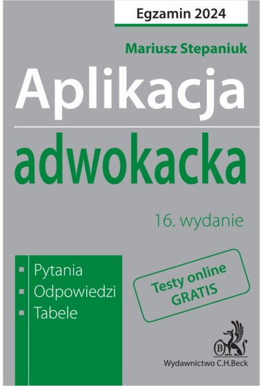 Dodatkowo książka zawiera miesięczny dostęp do testów online opracowanych zgodnie z wykazem ustaw wymaganych na egzaminie adwokackim, ogłaszanym corocznie przez Ministra Sprawiedliwości.