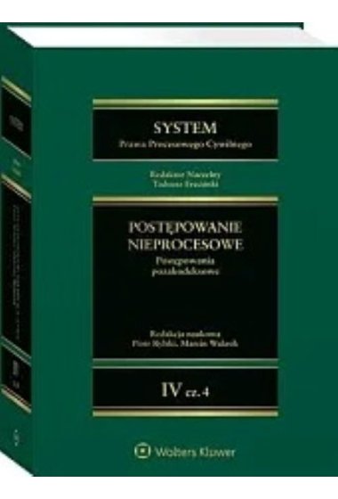 Tom IV Systemu Prawa Procesowego Cywilnego został poświęcony problematyce postępowania nieprocesowego. W 2021 r. ukazała się część 1 tego tomu pod redakcją naukową prof. Tadeusza Erecińskiego oraz prof. Kazimierza Lubińskiego prezentująca zagadnienia ogólne, które odróżniają postępowanie nieprocesowe od procesu. Zagadnienia szczegółowe obejmują postępowania ustanowione dla poszczególnych rodzajów spraw, które są rozpoznawane w trybie nieprocesowym, i są prezentowane w kolejnych częściach tomu IV. Poszczególne postępowania nieprocesowe zostały pogrupowane na podstawie kryterium przedmiotu sprawy. W części 4 podjęto tematykę podstawowych postępowań, które dotyczą spraw skierowanych na drogę postępowania nieprocesowego na mocy ustaw szczególnych. Omówiono postępowania: 1) w sprawach nieletnich, 2) w sprawach wyborczych, 3) w sprawach dotyczących dokumentów, 4) w sprawach z zakresu spółdzielczego prawa mieszkaniowego, 5) w sprawach z zakresu prawa o notariacie, 6) w sprawach z zakresu prawa morskiego 7) o orzeczenie zakazu prowadzenia działalności gospodarczej, 8) w innych sprawach: ze skargi na odmowę przyjęcia zawiadomienia o utworzeniu komitetu inicjatywy ustawodawczej, dotyczące wyborów do rady powiatowej izby rolniczej, postępowania z ustawy o własności lokali, o rozstrzygnięcie w ramach zarządu nieruchomością wspólną w razie braku zgody większości właścicieli lokali, o przyznanie państwowej kompensaty przysługującej ofiarom niektórych czynów zabronionych, wobec osób z zaburzeniami psychicznymi stwarzających zagrożenie życia, zdrowia lub wolności seksualnej innych osób.